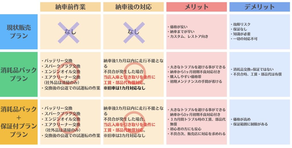 ✔ 納車前に最低限の消耗品は交換しておきたい
