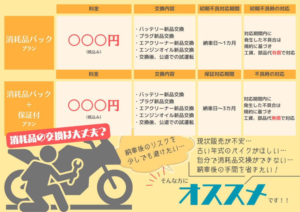 ●納車前に消耗品パックの交換!