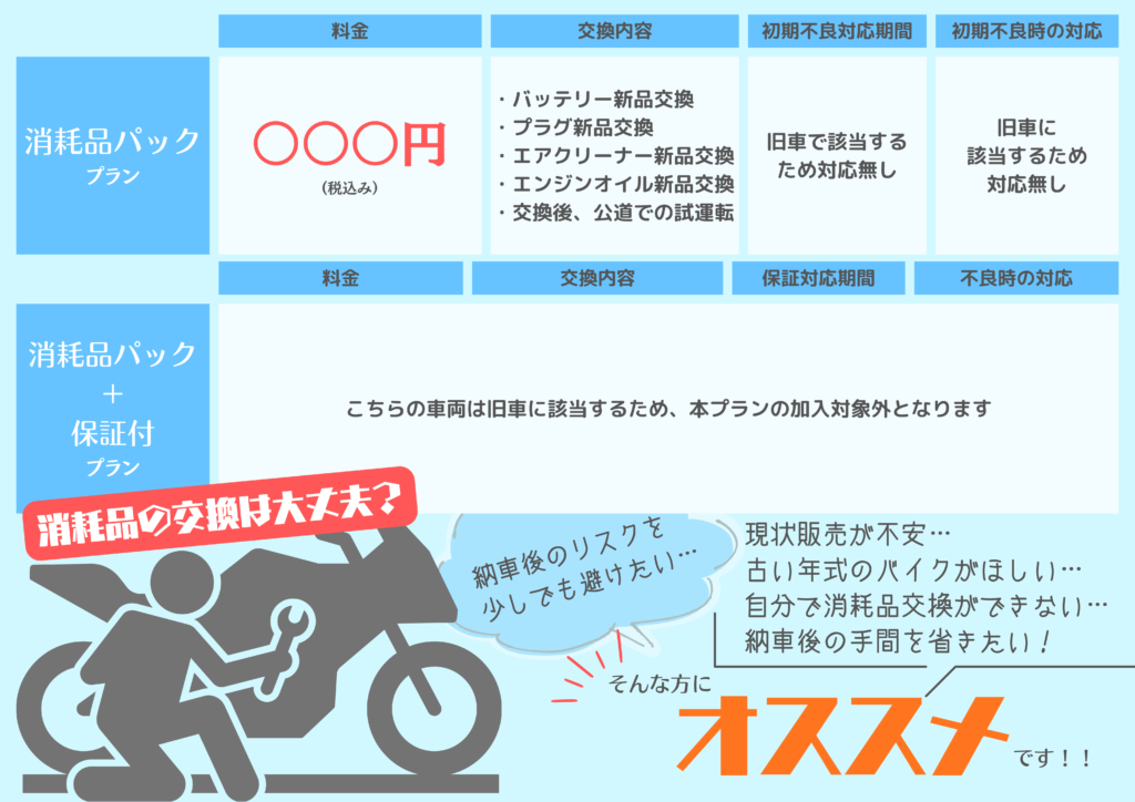 消耗品パック+保証付プランについて